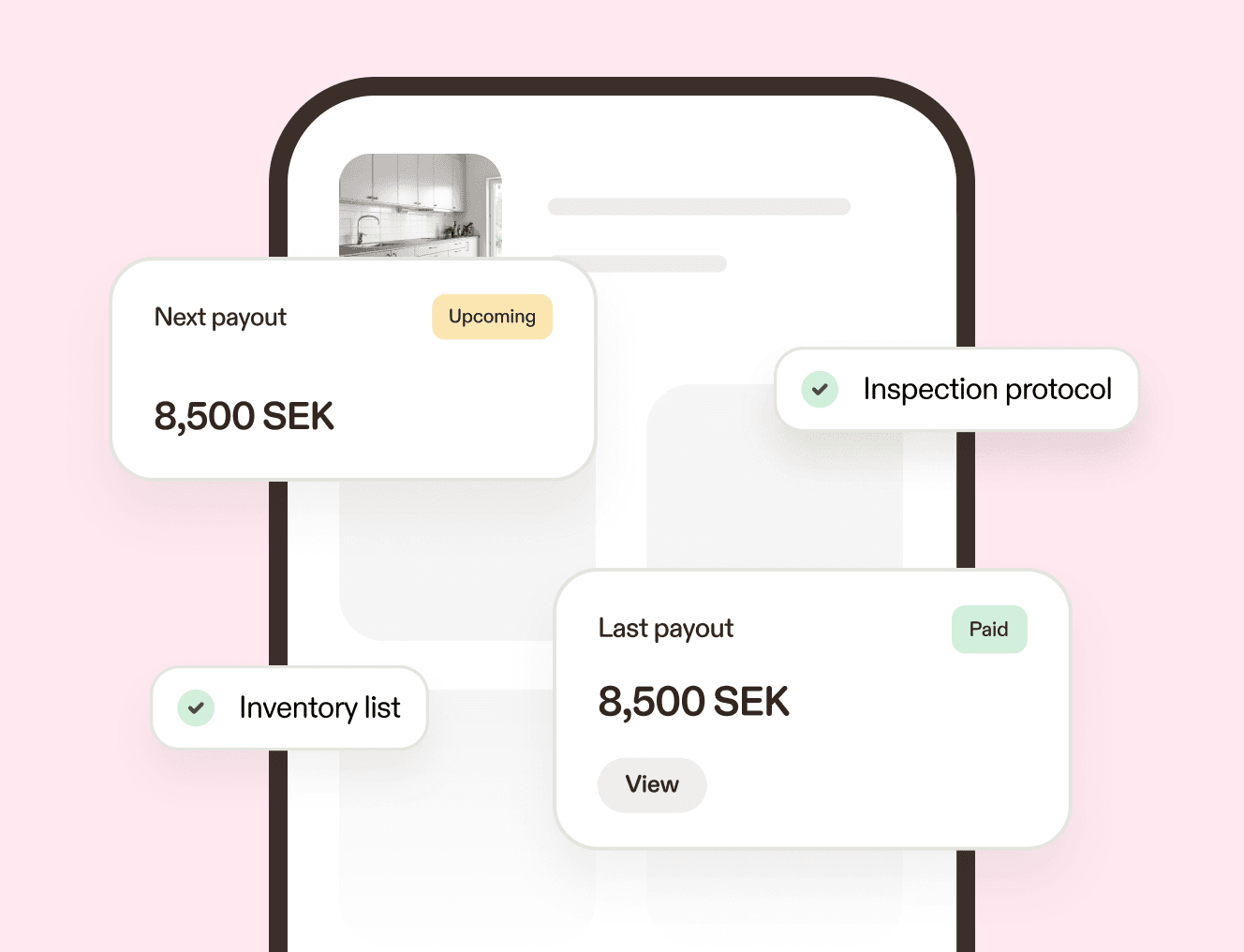 Keep everything organized in your rental overview. View your lease, track upcoming payments, and report incidents if they arise. To avoid vacant months, you can easily republish your listing when your rental is coming to an end.